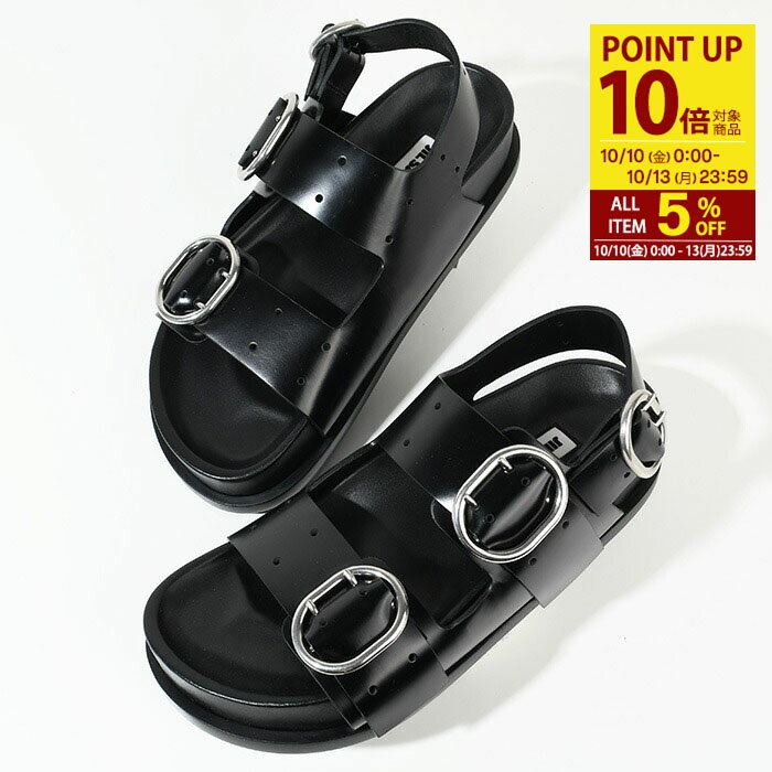 【P10倍&5%OFFクーポン】JILSANDER ジルサンダー サンダル スポーツサンダル バックルストラップ レザー J15WP0091 P2775 レディース ブラック 夏 フラットサンダル sstmcp