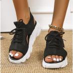 サンダル 厚底 レディース レースアップシューズ スポーツサンダル ニット メッシュ オープントゥ シューズ 靴 スリッポン 歩きやすい 疲れにくい 快適