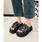 サンダル レースアップ スパンコール 厚底 コンフォート サンダル レディース