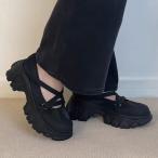 クロス ストラップ 厚底 メリージェーン シューズ 女性 レディース 靴 パンプス サンダル ラウンドトゥ レースアップ 紐 編み上げ 無地