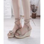 サンダル レースアップ厚底ジュートウェッジソールサンダル レディース