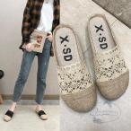 「mystic」 ビジューフラットサンダル 37 ブラック レディース