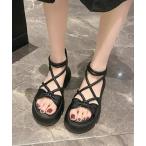 サンダル レースアップ厚底 華奢ストラップ サンダル レディース