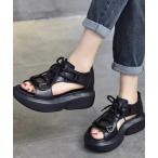 サンダル レースアップスニーカーサンダル厚底靴美脚 レディース