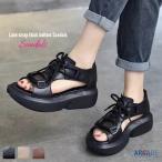 厚底 サンダル グラディエーター レディース オープントゥサンダル レースアップ ウェッジソール レザー革 ブーツサンダル メッシュ 通気性 ファッション