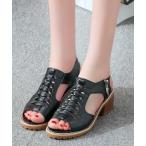 ブーツサンダル 春夏 レディース シューズ 靴 ハイカット ローヒール レースアップ オープントゥ バックファスナー「メール便不可」「70」