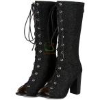 サマーブーツ レディース 太めヒール ブーツサンダル ロングブーツ レースアップ 編み上げブーツ 履きやすい ハイヒール ハイヒール 美脚