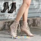 サマーブーツ ブーツサンダル レースアップ サンダル メッシュ ピンヒール レディース サマーブーツ グラディエーター 編み上げ オープントゥ 美脚