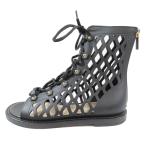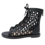 未使用 Christian Dior クリスチャンディオール Dトラップ メッシュ レザー サンダルブーツ レースアップ 靴 シューズ ブラック 36 レディース 古着 中古