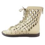 未使用 Christian Dior クリスチャンディオール Dトラップ メッシュ レザー サンダルブーツ レースアップ 靴 シューズ ベージュ 37.5 レディース 古着 中古