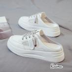 厚底靴スリッポン かかとなし スニーカー レースアップ プラットフォーム レディース サボサンダル キャンバス靴 スリッパ 履きやすいカジュアル春夏