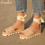 サンダル レースアップ フラット オープントゥ スウェート調 レディース 靴 シューズ ジュート巻き リボン 歩きやすい シンプル 夏 スエード調 オ