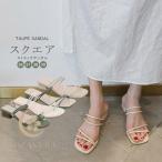 サンダル レースアップ レディース 靴 ストラップ スクエア ミュールサンダル ピーチ