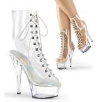 ショートブーツ ブーティ 厚底 Pleaser プリーザー 15 cm ヒール クリア ブーツサンダル オープントゥ レースアップ 大きいサイズ レディース メンズ 取寄