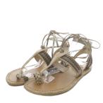 クリスチャンルブタン Christian louboutin トングサンダル フラット レースアップ スタッズ 38 グレー /YO13 レディース