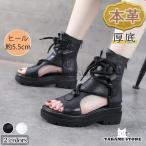 サンダル ウェッジヒール 厚底サンダル ショートブーツ 夏ブーツ 本革 レザー メッシュ レースアップ 身長アップ 細見え