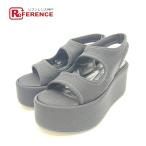 プラダ PRADA トライアングルロゴ サンダル ロゴプレート 厚底 靴 サンダル レザー ブラック レディース 中古