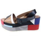 HERMES エルメス ウェッジソール マルチカラー レザー ストラップ 厚底 サンダル シューズ ブラック/ベージュ レディース