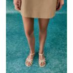 サンダル ストラッピー ラフィアTバーアンクルストラップサンダル レディース