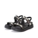 サンダル ツイード×パール厚底ストラップサンダル レディース