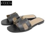 美品 HERMES エルメス オラン フラットサンダル シューズ レディース 黒 ブラック 36 1/2