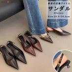 パンプス ストラップ バックストラップサンダル ポインテッドトゥ ヒール PU シルバーシューズ 歩きやすい 履きやすい おしゃれ 美脚 カジュアル 結婚式
