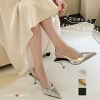 パンプス バックストラップ バックストラップサンダル ポインテッドトゥ ハイヒール ミュールサンダル 履きやすい おしゃれ 美脚 カジュアル 大人 シルバー