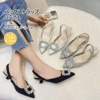 パンプス ストラップ バックストラップサンダル ビジュー ポインテッドトゥ ヒール 歩きやすい 履きやすい キラキラ おしゃれ 美脚 カジュアル 通勤 結婚式