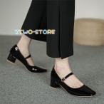 ストラップパンプス メリージェーン 痛くない 歩きやすい ローヒール 黒 変形ヒール スクエアトゥ 甲ストラップ