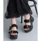 サンダル 「26年春夏新作」オーガンジーフリル厚底バックストラップサンダル レディース
