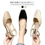 パンプス レディース バックストラップ サンダル シューズ スリングバック スクエアトゥ 3.5cmヒール ぺったんこ ミドルヒール 痛くない 歩きや
