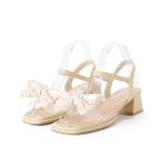 サンダル リボン メタリック スクエアトゥ バックストラップ付き サンダル レディース