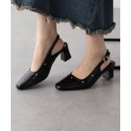 パンプス パテント スクエアトゥ ダブルストラップ スリングバック パンプス