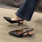 サンダル バックストラップローヒール ポインテッドトゥサンダル レディース