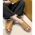 サンダル スクエアトゥ フロントステッチ バックストラップ付き フラット サンダル レディース