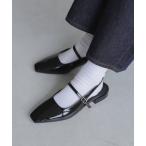 パンプス レザー調 スクエアトゥ バックオープン ストラップ パンプス
