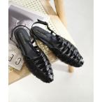 サンダル レザー調 クロス バックストラップ フラット サンダル レディース