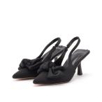 パンプス 「25秋冬」4cmヒールギャザーリボンスリングバックパンプス(0606)