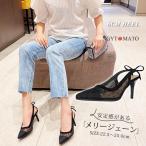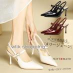 パンプス レディース バックストラップ ポインテッドトゥ ピンヒール 艶あり ストラップパンプス ミュールパンプス ベルト おしゃれ 結婚式 美脚 カジュアル 黒