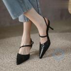 バックストラップパンプス ピンヒール 9cmヒール パンプス エナメルレザー 合皮レザー ハイヒール レディース ポインテッドトゥ 通勤