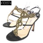 JIMMY CHOO ジミーチュウ 062PARIS シルクサテン ビジューデザイン バックストラップ ミュール 35 ブラック レディース