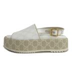 【名古屋】グッチ GGプラットフォーム サンダル 701153 バックストラップ ホワイト ベージュ 36.5 厚底 レディース