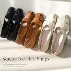 スクエアトゥ レディース バブーシュ パンプス フラットシューズ 痛くない バレエシューズ 黒 靴 スリッポン