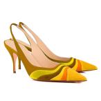 【並行輸入品】FOWT レディース ポインテッドトゥ キトンヒール スリングバック パンプス スエード レインボーカラー ストライプ ゴムバンド