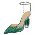 【並行輸入品】FSJ レディース ブライダルヒールサンダル ポインテッドトゥ クリスタルチェーン アンクルストラップパンプス ラグジュアリーライ