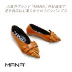 MANA マナ 靴 レディース ビッグ リボン パンプス 革 茶 おしゃれ 春 パテント ローヒール 561000 キャメル ポインテッドトゥ ぺたんこ 大人 日本製 送料無料