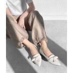 パンプス ポインテッドトゥ リボン付きフラットシューズ