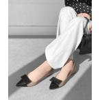 パンプス ポインテッドトゥ ステッチリボンデザイン フラットパンプス