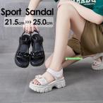 スポーツサンダル 厚底 レディース ヒール5cm ベルト コンフォート 歩きやすい 軽量 美脚効果 スポサン 厚底サンダル ビーチサンダル 厚底靴