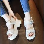 スポーツサンダル 厚底 レディース ヒール6.5cm ベルクロ ベルト コンフォート 歩きやすい 軽量 美脚効果 スポサン